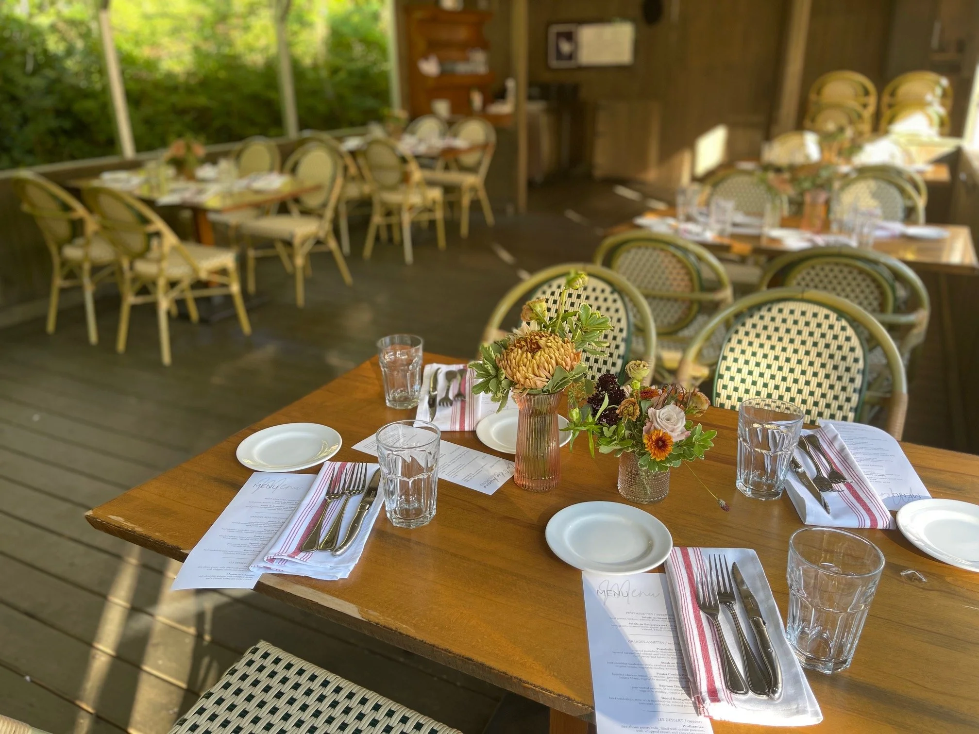 No steps are required to enter either the outdoor or indoor seating areas at RendezVous