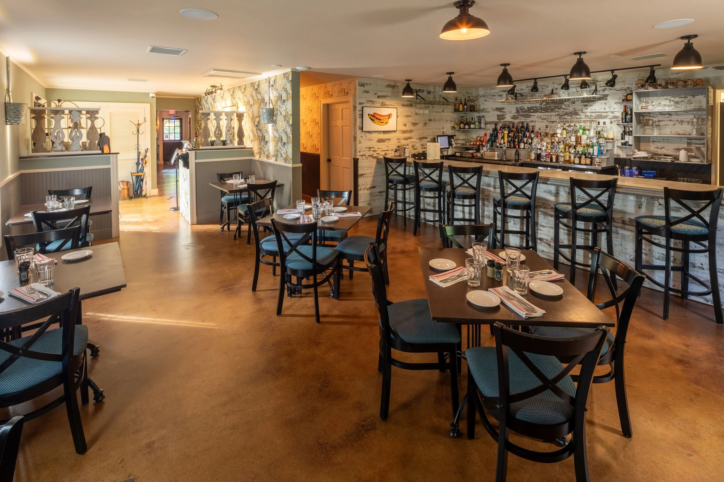 The bar is a semi-private area to the right of the dining room upon entry.