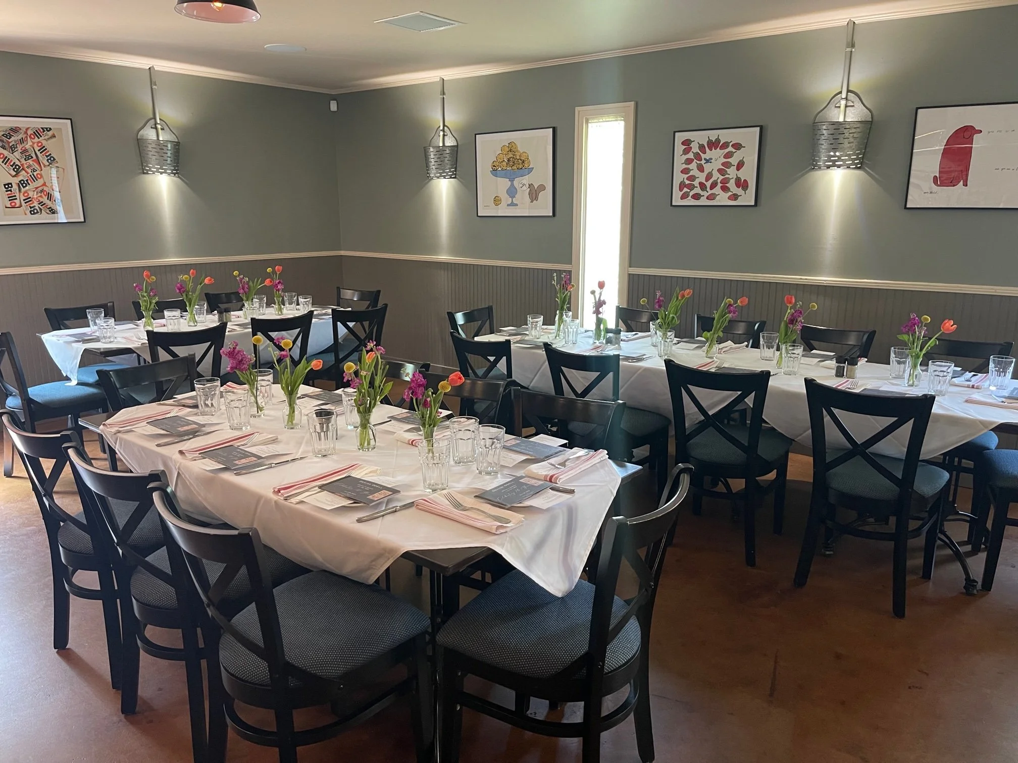 This area seats up to 30 people and can be setup with one, two or three tables.